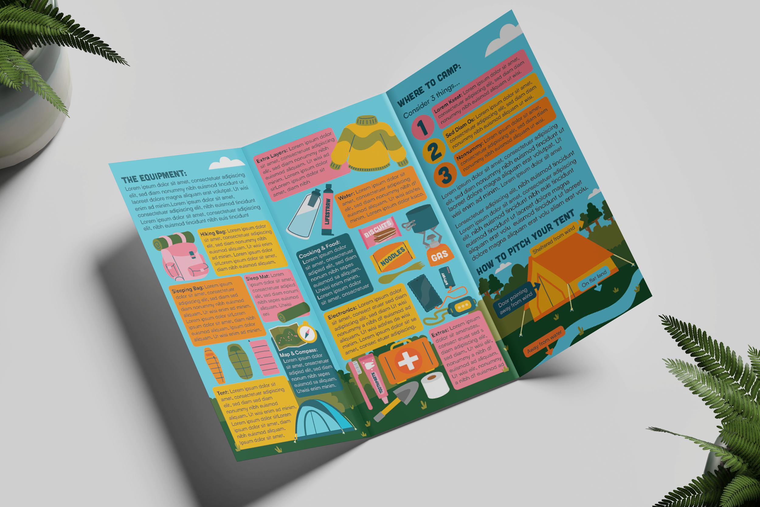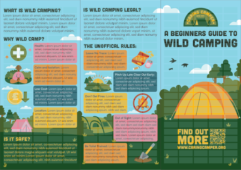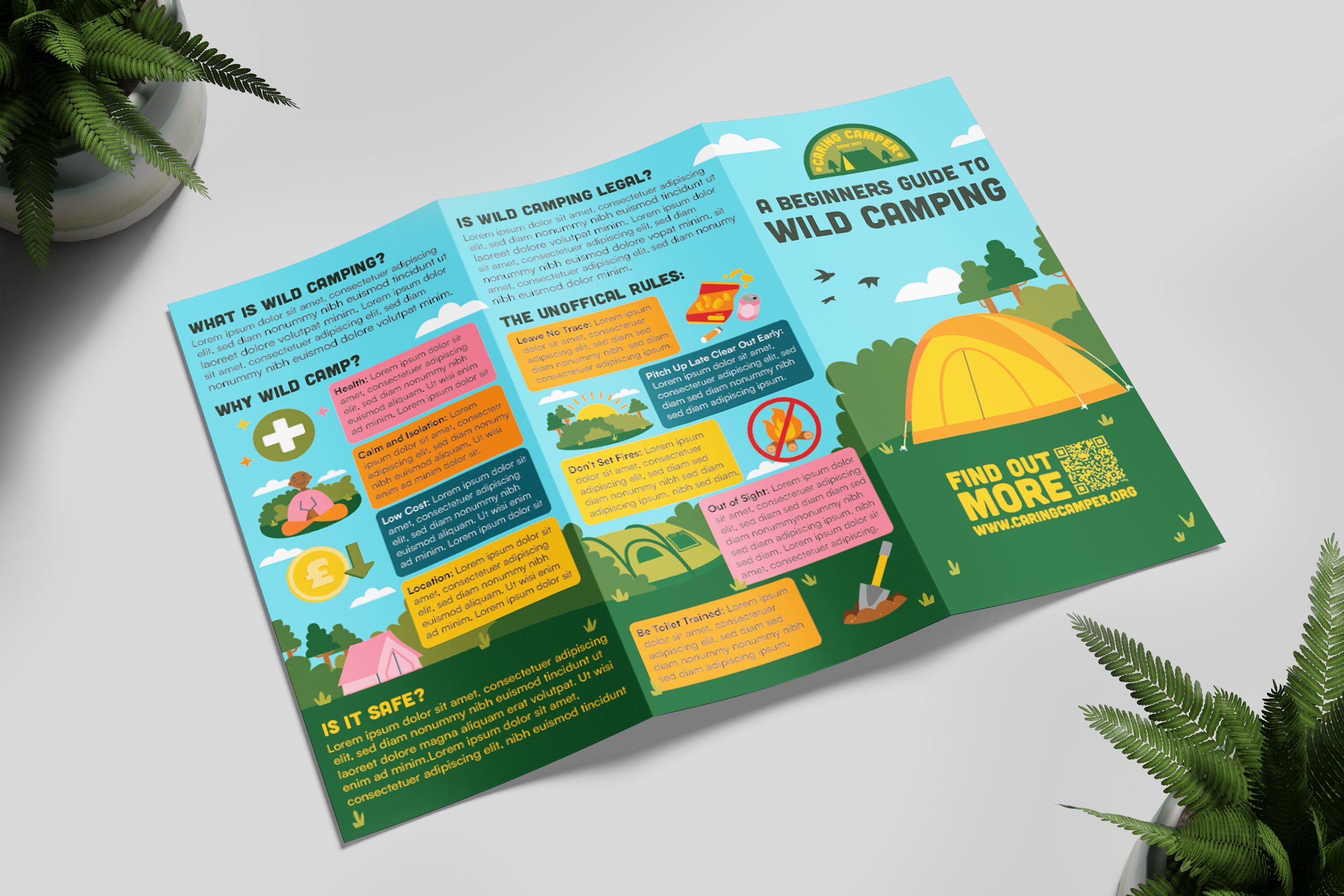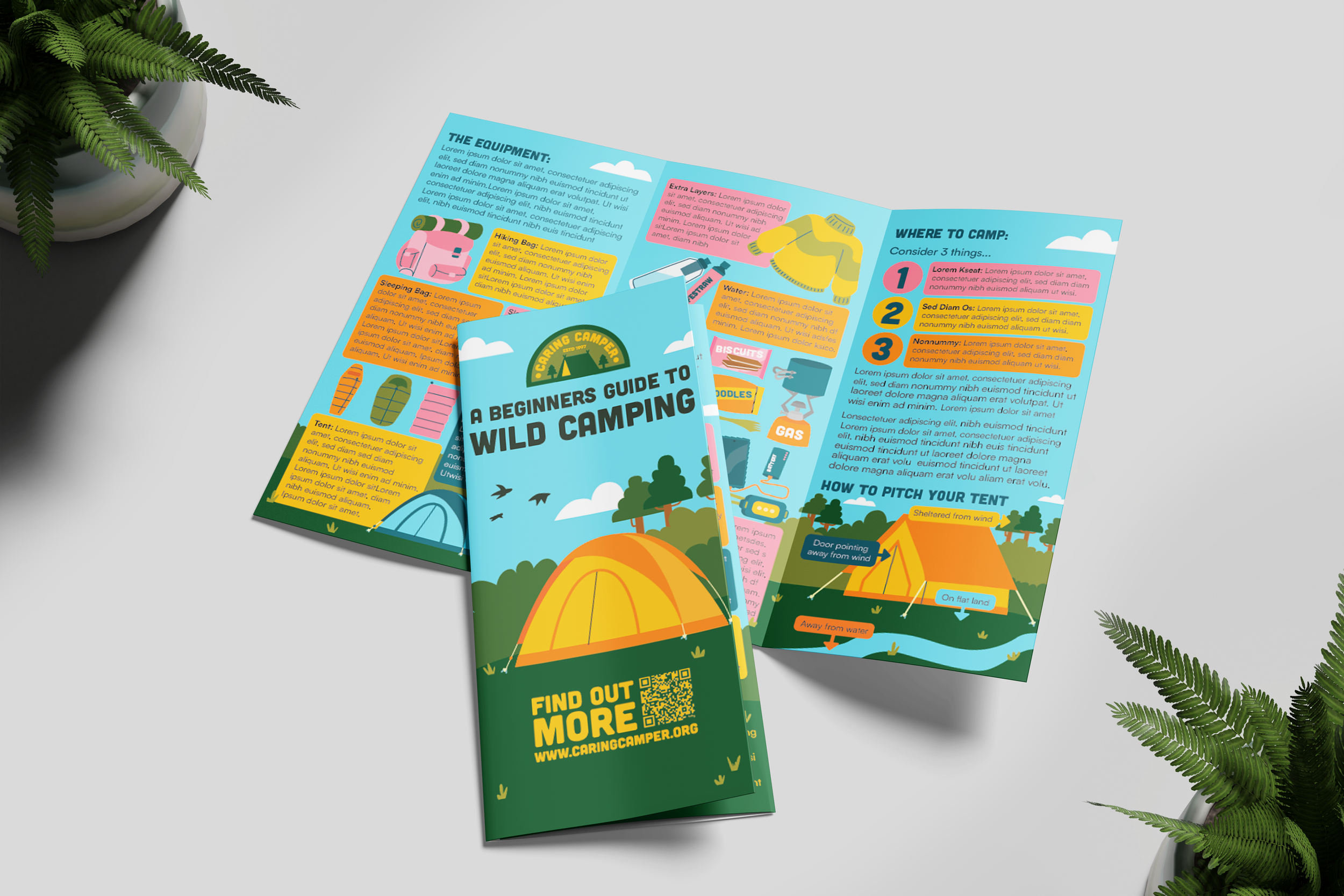 The aim of this flyer was to give beginner wild campers an overview of wild camping, how to camp responsibly and how to prepare for their first camp. It needed to be something that wasn’t too bulky so it could be put into a pocket or bag without taking up too much room.